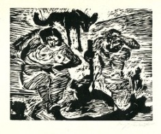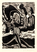 Der Central-Verein für das gesamte deutsche Buchgewerbe veranstaltete im Jahre 1898 in Leipzig die „Erste Ausstellung deutscher Holzschnitte“, worunter bei näherer Betrachtung des dazu erschienenen Kataloges (1) eine Leistungsschau der vereinigten Xylographen Deutschlands verstanden wurde. Xylographie bedeutete zu diesem Zeitpunkt die auf die Spitze getriebene Verfeinerung im Holzstichverfahren, bei dem spezialisierte Handwerker harte Stirnholzplatten mit Grabsticheln bearbeiteten. Je näher die dabei erzeugten feinsten Rillen und Stege beinander lagen, desto dichter war der Farbauftrag nach dem Druck auf dem Papier und desto dunkler auch die betreffende Stelle. Umgekehrt wurde Helligkeit durch das Setzen lockerer Strichlagen erzeugt, da an diesen Stellen der helle Papiergrund überwog. Der Effekt konnte durch die Kombination von Dicke und Dichte bzw. Schmalheit und größeren Abstand der Stege gesteigert werden. Die auf diese Weise beliebig erzielbaren Grauschattierungen ließen eine sogenannte „künstlerische“ Reproduktion gemalter Vorlagen zu. Heute, aber offenbar auch schon damals sah man darin hauptsächlich einen Fotografie-Ersatz. Folglich wurden alle Entwicklungen, die für die Zunft existenzbedrohlich waren, mit scheelen Augen betrachtet. Dazu gehörten fotografische Wiedergabemethoden wie z.B. der Lichtdruck aber auch eine seit kurzer Zeit von Künstlern wie William Nicholson, Félix Vallotton oder Edvard Munch praktizierte Art des Flächenholzschnitts, der den Bestrebungen des Reproduktionsholzschnitts diametral entgegengesetzt war. Der (nicht namentlich erwähnte) Schreiber des Katalogtextes lehnt vor allem den von der jungen Künstlergeneration gebrauchtem Ausdruck „Originalholzschnitt“ ab: „Die Holzschnittarbeit an diesen Blättern als »Kunst« zu bezeichnen ist einfach absurd [...] Wir verurteilen das Verfahren [...], weil unser kunstliebendes Laienpublikum durch die besondere Erwähnung »Originalholzschnitt« in einflussreichen Kunstblättern auf den Gedanken kommen muss, dass der Originalholzschnitt etwas Besseres biete als der Reproduktionsholzschnitt; er erhält dadurch eine durchaus falsche Ansicht über den Holzschnitt überhaupt, die unserer Kunst verhängnisvoll werden kann [...] Der Holzschnitt ist und bleibt ein Reproduktionsverfahren.“ Hier lag durchaus nicht der Künstler falsch, der – so weiter – „nie die Arbeit eines Xylographen verstanden hat und noch weniger eine Ahnung von modernen Reproduktionsverfahren besitzt“, sondern eine Zunft lag in ihren letzten Zügen, nicht begreifend, dass in einem fundamentalen Stilwandel um 1900 Künstler auch handwerklich-technisch nach neuen Medien für ihr Ausdrucksbedürfnis suchten. Mit den „einflussreichen Kunstblättern“ war eindeutig die von Harry Graf Kessler herausgegebene Luxuszeitschrift „Pan“ gemeint, die originalgrafische Beilagen, darunter auch Holzschnitte von Félix Vallotton, Otto Eckmann oder Peter Behrens enthielt. Künstler des späten 19. Jahrhunderts wie van Gogh oder Gauguin, die wegen ihrer Oppositionsstellung zum zumindest in Frankreich alles beherrschenden Impressionismus für die erste Expressionisten-Generation zum Vorbild wurden, hatten schon lange für sich den japanischen Holzschnitt entdeckt. Dem sich daraus ergebenden Credo flächiger Gestaltung folgend, hauchten als erste die schon erwähnten Vallotton und Munch, aber auch Gauguin, Derain, oder Vlaminck nicht nur dem Farb- sondern auch dem reinen Schwarz-Weiß-Holzschnitt neues Leben ein. Sie bearbeiteten dabei ohne vorherige Vorzeichnung einfaches Langholz mit dem Schneidemesser, nicht selten direkt von „primitivem“ Kunsthandwerk beeinflusst, das sie zur vollgültigen Kunst erklärten. Die Aufzeichnungen Gauguins von den Marquesas-Inseln (2) 1903 oder die Berichte Pechsteins über seinen Aufenthalt auf den Palau-Inseln im Südpazifik (3) 1913 bis 1914 geben ein beredtes Zeugnis davon. Max Pechstein zählte ab 1906 auch zu jener Gruppe von Künstlern in Dresden, die für die kommenden Expressionisten-Generationen in Sachen Druckgrafik – und dort wieder speziell auf dem Gebiet des Holzschnitts – Maßstäbe setzen sollten. Denn während die französischen Druckgrafiker kurz vor und nach 1900 vor allem an Lithografie und Radierung festhielten (4), wurde der expressionistische Holzschnitt vor allem zu einer „deutsche Sache“. In die Öffentlichkeit trat die anfangs aus den Architekturstudenten Ernst Ludwig Kirchner, Erich Heckel, Fritz Bleyl und Karl Schmidt-Rottluff bestehende Künstlergruppe „Brücke“ (5) 1905 mit einem knapp formulierten Programm (6), das in seiner unaufgeregten, keineswegs kämpferischen, aber doch fast lässig selbstbewussten Art in krassem Widerspruch zu dem steht, was bis heute in unüberschaubarer Menge über den Expressionismus (als deren wichtigste Proponenten die Brücke-Künstler immer noch gelten) gesagt und geschrieben wurde. Genügten den jungen Künstlern Sätze wie „Als Jugend wollen wir uns Arm- und Lebensfreiheit verschaffen. Jeder gehört zu uns, der unmittelbar und unverfälscht wiedergibt, was ihn zum Schaffen drängt“, dann hat man sie geradezu vor Augen, wie sie sich fern jeglicher Atelier-Muffigkeit mit ihren Aktmodellen nackt um die Moritzburger Seen bei Dresden tummelten, um ihre Eindrücke später dem Holzstock anzuvertrauen. Auffällig sind die oft in direktem Widerspruch zu einander stehenden Aussagen der Zeitgenossen, die ein ziemlich getreues Zeugnis davon geben, wie schwer es ihnen fiel, sich über Inhalte oder Ziele des Expressionismus zu verständigen. Bis heute hat sich daran kaum etwas geändert. Vielleicht macht es aber gerade das Wesen des Expressionismus aus, dass die vielen „Ismen“ der Zeit, mit all ihren skrupulös formulierten Unterscheidungen, in ihm ihren eigentlichen Kulminationspunkt finden. Wenige Beispiele, dem Begriff auf die Spur zu kommen, müssen hier genügen. Zur Verteidigung verunglimpfter Künstler herangezogen, zit