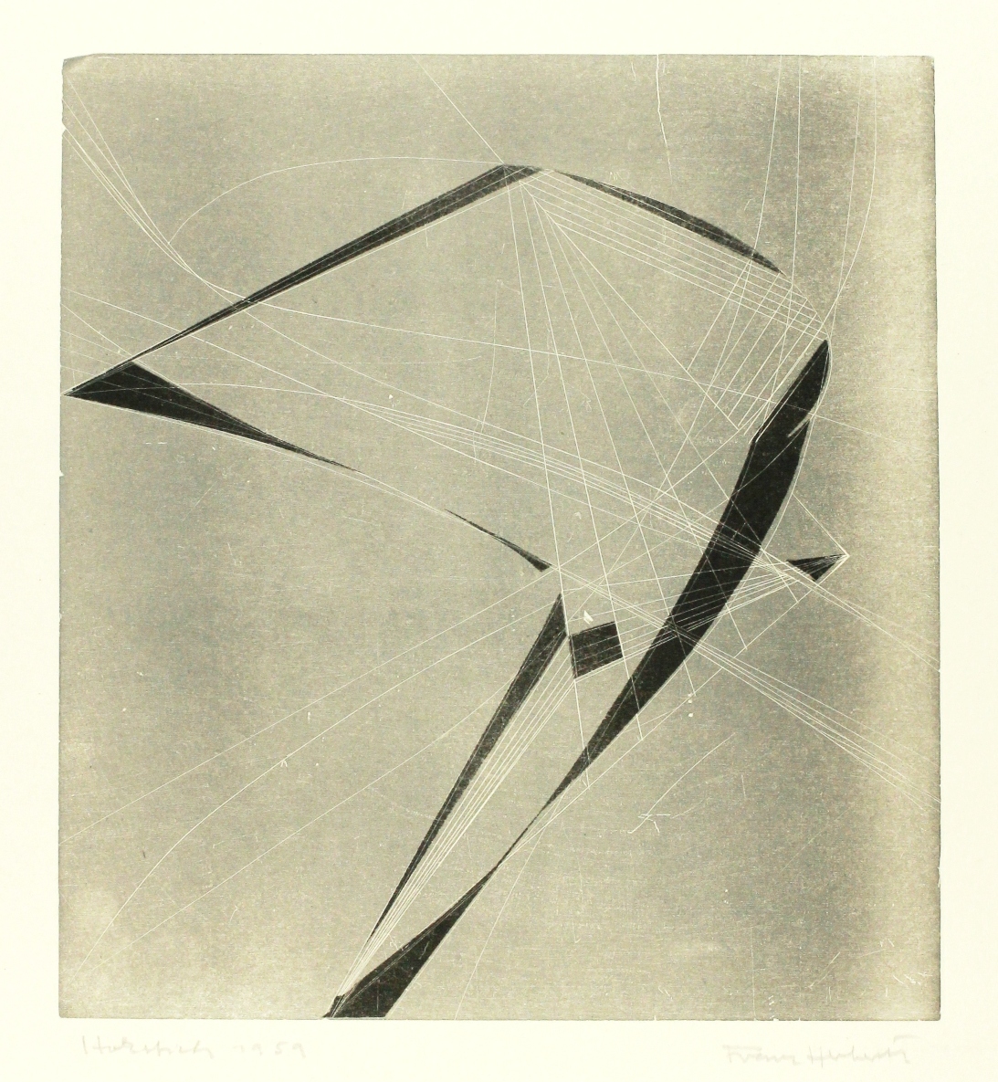 Franz Herberth was born in Vienna in 1907 and studied from 1924 at the School of Applied Arts in Vienna under Franz Cižek, Erich Mallina, Anton Kenner, Rudolf Larisch and Berthold Löffler. After completing his studies, he remained at the School, working from 1930 as a teacher in the print workshop. In 1939 he was dismissed because of his marriage to the non-Aryan Bettina Freund, after having been expelled a year earlier from the Bund Österreichischer Gebrauchsgrafik (Austrian Society of Commercial Art). In 1940 he was ultimately prohibited from working altogether. After the war, he became head of the print workshop at the University of Applied Arts, as it had become, and was made a professor after working there for twenty years. He died in Pulkau, Lower Austria, in 1973. Whereas the works of Viennese Kineticists of the 1920s in Franz Cižek’s class (according to Oswald Oberhuber “the only existing Futurism school”), such as Erika Giovanna Klien, Otto Erich Wagner, L. W. Rochowansky, Friederike Nechansky, Elisabeth Karlinsky or Marianne Ullmann, were widely published and shown in exhibitions, in the book Wiener Kinetismus—Eine bewegte Moderne, for example,Herberth is not even mentioned. This could be explained by the fact that as a student (for some of the time alongside Erika Giovanna Klien) and in subsequent years he felt more attached to German Expressionism than to abstract art. It was not until the early 1950s that he turned to abstract art, but then with a rage for experimentation unparalleled in post-war Austrian art. Herbert confined himself to coloured linocuts and, from the early 1960s, wood engravings (with a marked change in style because of the medium), but in doing so exploited all printing refinements to their limits. Unlike the artists of the Grosvenor School in London, who from the mid-1920s gave an initial (figurative) stimulus to coloured linocuts, borrowing heavily from the Italian Futurist movement, Herberth returned rather to the abstract vocabulary of Viennese Kineticism. Unlike Futurism (which had also been an inspiration for Kineticism), there is no attempt at communication of a message or agitation in Herberth’s work, highlighting even more clearly the break with Socialist Realism, which he turned his back on in the early 1950s when he renounced his membership of the Communist Party. The effect of his quiescent “kinetic” rather than “Kineticist” abstract compositions is due not only to their experimental quality but above all to the careful planning, the expert knowledge and the intelligent exploitation of the technical possibilities. “The spatial effect in Herberth’s compositions, created not just by the lines, but also particularly by the overprinting of the plate, slightly offset, with a second translucent colour, becomes a quasi-characteristic element of his work. Apart from parallel shifts, there are also sheets in which the translucent overprint is slightly rotated. His compositions become even more complex through the overprinting of a plate turned through 180 degrees. Herberth went on to mix and vary these possibilities” (Schneider 2003, p.10). Another notable feature is the systematic use of rainbow printing based on the Japanese “bokashi”, the gradation of a colour from light to dark or to another colour: “Herberth creates colour gradations not on the plate but on the roller. By rolling the ink on the stone to the desired effect it can then be taken up by the roller.” (Schneider 2003, p.11). To create different gradations on a single plate, Herberth simply divides up the plates, rolls them out separately and then recombines them for printing. These prints cannot be produced in large runs, and prints with identical colour combinations are rare. Instead, there are several colour variants of one and the same motive, also with different formats—portrait or landscape. The prints are never titled but, as with Hartung’s lithographs and woodcuts, are numbered in the form “year—motive serial number—motive variant”. Perhaps the most surprising thing about Herberth’s colour linocuts is the fact that they resemble a much more recent phenomenon. Using analogue techniques, he was able to produce the Photoshop effects created by graphic designers today. Schneider 2003: Michael Schneider, Vom Gegenstand zum Material – Zur Entwicklung der Technik des Hochdrucks im druckgrafischen Werk von Franz Herberth, in: Erika Patka (Hrsg.), Franz Herberth — Neue Dimensionen der Druckgrafik um 1950, Wien 2003) Alle Linolschnitte und Holzstiche von Franz Herberth sind auf weichem Velinpapier unterschiedlicher Formate gedruckt sowie mit dem runden Prägestempel „Nachlass / Franz Herberth / Estate“ und der handschriftlichen Werknummer versehen. Herberth signierte seine Drucke nur gelegentlich, wahrscheinlich erst beim Verkauf eines Blattes. Wenn Exemplare (oft die schönsten) nicht signiert sind, stellt dies also keineswegs eine Wertminderung dar. Mag es bei anderen Künstlern vorkommen, dass unsignierte Drucke – vor allem dann, wenn es sich um Spätdrucke in größerer Auflage nach dem Ableben des Künstlers handelt – unpersönlicher sind, trifft dies auf die Druckgrafiken von Franz Herberth nicht zu. Seine Farblinolschnitte sind praktisch immer Unikatdrucke, wobei Farbwahl, Art und Weise des Farbverlaufs, Ausrichtung und Übereinanderdruck der einzelnen Platten sowie die Entscheidung, ob Platten für eine Variante hinzugefügt oder weggelassen werden sollten, bei jedem Druckvorgang zu hundert Prozent in den Händen des Künstlers lag. Wenn also ein Druck einmal vorlag und als gut befunden wurde, empfand es Herberth offensichtlich als überflüssig, ihn durch eine zusätzliche Unterschrift zu autorisieren, da ja sowohl Herstellung der Platten als auch der Druck vom Künstler selbst vorgenommen worden waren. Der nach dem Tod des Künstlers in Übereinkunft mit den Erben angebrachte Nachlass-Stempel dient ausschließlich zur B