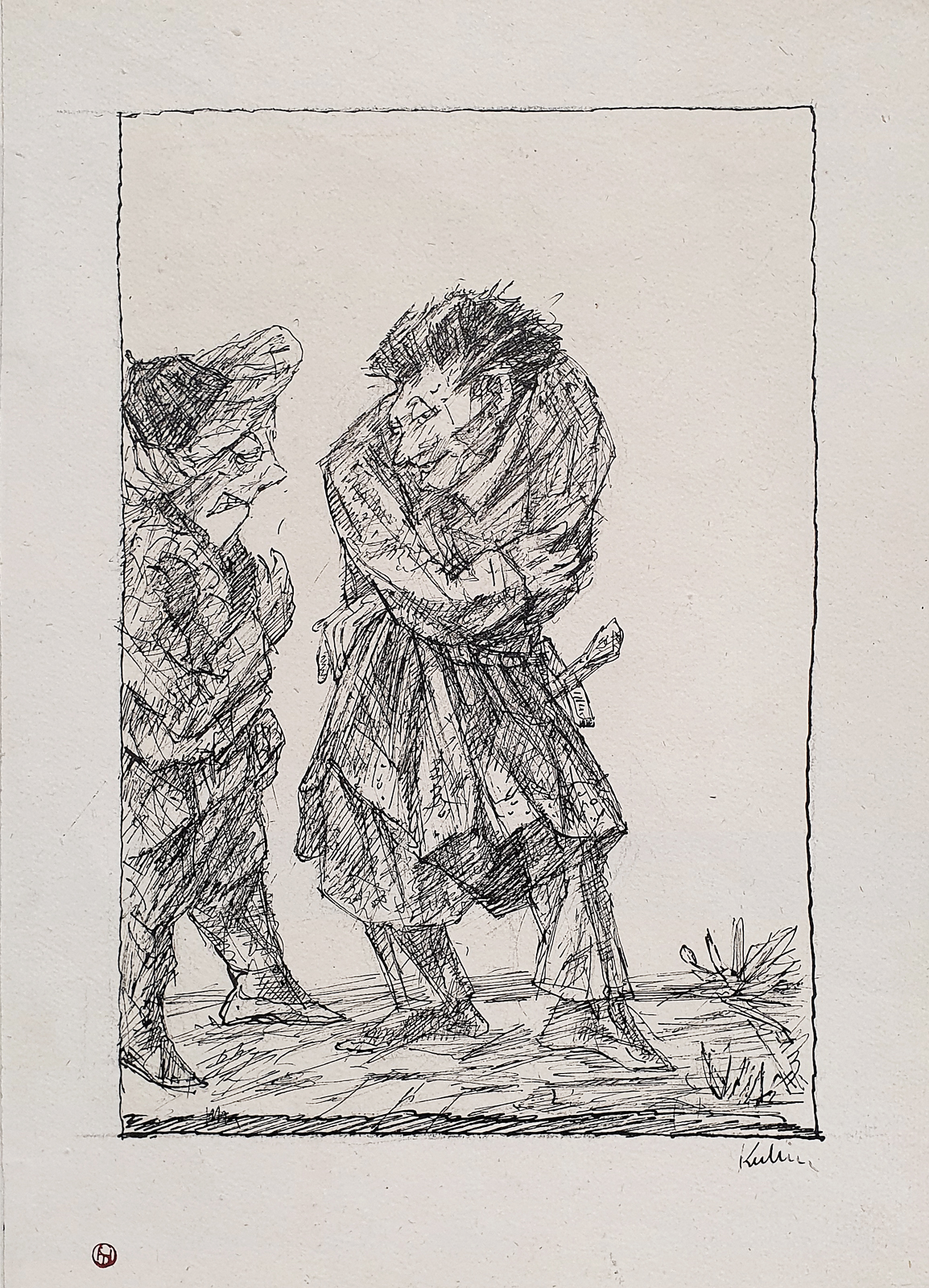 Kauernde Figur in Landschaft Lithographie lithograph |