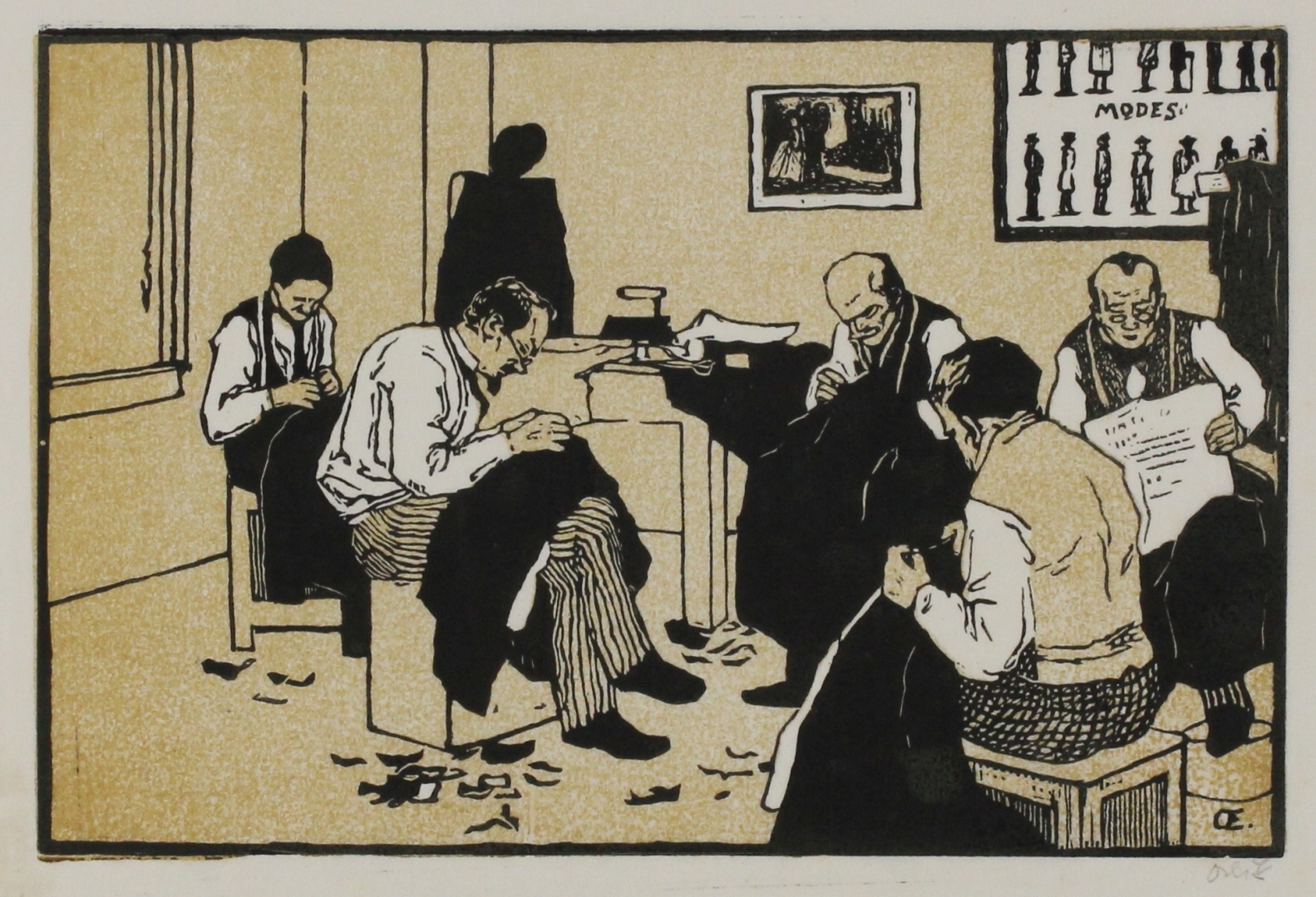 Linoleum engravings, 4 illustrations for Demons by F.M. Dostoyevsky, ca. 16,3 x 9,8 cm (slightly varying sizes), published in the Brazilian edition of Dostoyevsky's complete works, edited by Livraria José Olympio, Rio de Janeiro, 1960, hand prints on Japan paper aside from the edition, estate stamp |