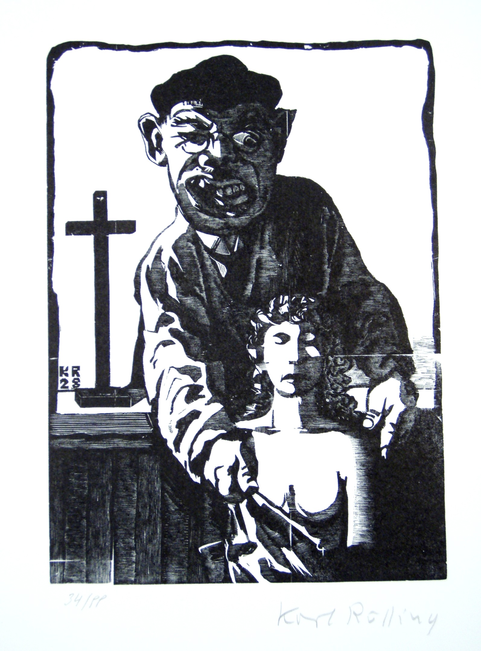 Wenn man das Wort "holzschnittartig" benützt und "lapidar" meint, trifft man ziemlich genau den Stil von Kurt Scheeles Holzschnittwerk. Aus der Fläche gestaltet in entschiedenen, einfachen Formen. Langholzschnitt der frühesten Messer-handhabung nur mit zeitgemäßer Kunstauffassung [...] Unverwüstlicher Reiz der ersten primitiven Erfindung, die hier ganz befreit von der wirtschaftlichen Entwicklung und Drucktechnik in Bezug auf Massenauflage, Schnelligkeit, Billigkeit wiederentsteht, so schreibt Scheele über sich selbst für einen Lexikonartikel. Von Händen und den vielfältigen Möglichkeiten ihres Ausdrucks muß Scheele fasziniert gewesen sein, denn es finden sich auf Originaldrucken der dreißiger Jahre noch mehr Handformen, die ebenfalls tableauartig gedruckt wurden. Von den erhaltenen Stöcken stellte Bodo Niemann in den neunziger Jahren 10 Handdrucke her.