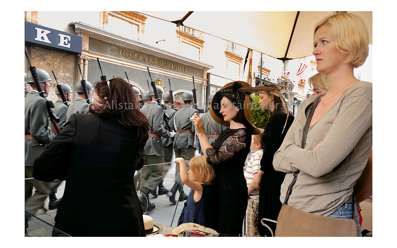 The new photos by Alistair Fuller to be seen until the end of January in the exhibition "Symbolism – Surrealism" show surreal aspects of Vienna. Fuller was born in London. He first came to Vienna in 1997 and has lived there permanently since 2007. He has become well-known for his unconventional and impartial view of Viennese life. In 2010 he presented "Zug fährt ab – Visual poems of the everyday; the extended living room of the U‑Bahn". Although these pictures were "shot from the hip", as he puts it, and have a strong documentary feel because of their vivid black-and-white appearance, the result is a series of idiosyncratically composed practically tableau-vivant photos that are as far from the typical Viennese clichés as Vienna is from London. Fuller offers a view of the city and a reaction to his immediate surroundings that can be achieved only by a person who is free of prejudices, be they positive or negative. Vienna is ideal for Fuller's new photos, whose colourfulness sets them apart from the classic images of the first Paris Surrealist generation. In contrast to other European cities and historical models, the surreal element in Vienna is rarely informed by political calculation, in the form, for example, of protest demonstrations. On the contrary, Vienna appears to be blessed inherently with an ambivalence that quickly turns love into hate and vice versa. There is no need to choose in many cases, because time, inertia and the delegation of responsibility often take care of things in true Kafkaesque style. The surreal is so commonplace in Vienna that people have sometimes to pinch themselves to make sure they are awake and not dreaming. With Fuller's pictures this is ineffectual, however, because it is impossible to tell whether they are deliberate compositions or snapshots taken in the split-second required to transport the moment into the realm of reality. It is for viewers to decide whether what they see is typical or not. They are free to choose what they perceive and recognise. Fuller's photos are often reversible pictures, in which the perspective is deliberately altered, allowing first one and then another figure to be recognised. There was a major Vienna 1900 exhibition entitled "Dream and Reality". To judge by these photos taken by an "outsider", the distinction is still not clear in Vienna today. |