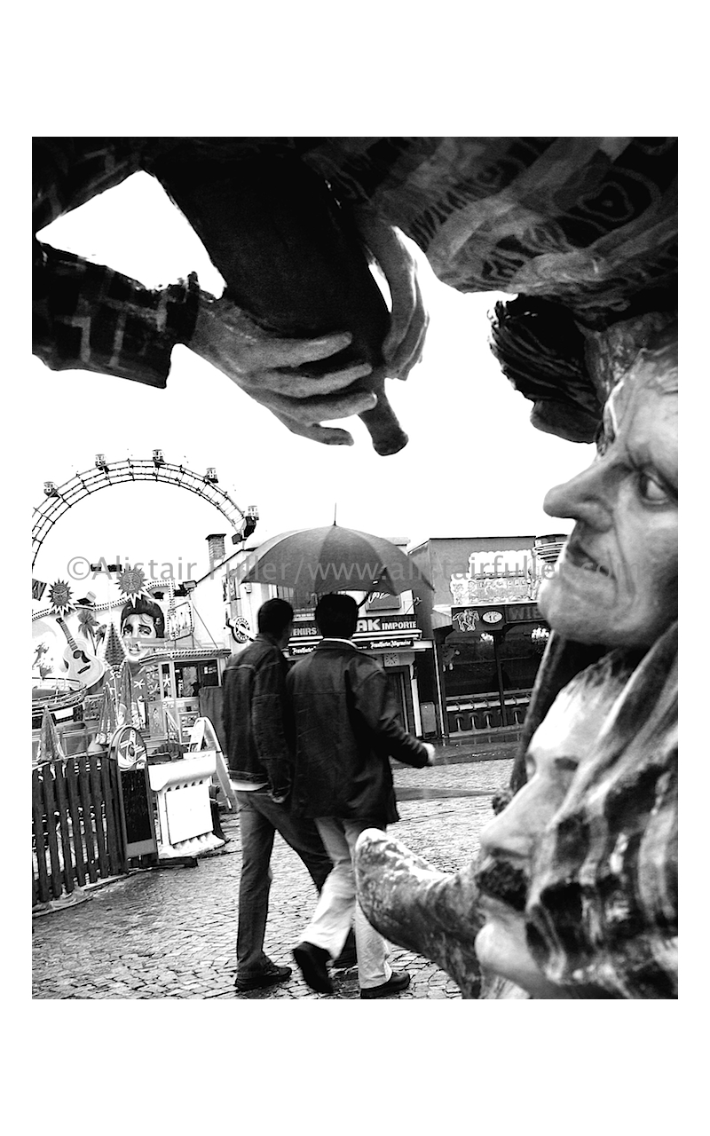 In seinen neuen Fotos beschäftigt sich Alistair Fuller im Rahmen der noch bis Ende Jänner laufenden Ausstellung "Symbolismus - Surrealismus" mit den surrealen Aspekten Wiens. Wien scheint für die neuen Bilder Fullers, die sich schon durch die Farbigkeit von den klassischen Bildern der ersten Pariser Surrealisten-Generation unterscheiden, die ideale Stadt zu sein. Eine Stadt, in der im Gegensatz zu anderen europäischen Städten und zu historischen Vorbildern das surreale Element selten von politischem Kalkül – etwa im Sinne einer Protesthaltung – genährt wird. Hingegen scheint Wien von Natur aus reichlich mit Ambivalenzen gesegnet zu sein, wo liebevolle Gefühle schnell in Hass umschlagen können und umgekehrt, wo man sich aber manchmal auch gar nicht für das eine oder andere entscheiden muss, da die Faktoren Zeit, Trägheit und das Delegieren von Entscheidungen an einen bei Kafka geborgten Türhüter für die Erledigung sorgen. Schließlich ist in Wien das Surreale so alltäglich, dass man sich oft kneifen muss, um zu überprüfen, ob man wacht oder träumt. Bei Fullers Bildern ist dies jedoch zwecklos, da man nie weiß, ob da komponiert oder einfach eine Handlung in genau dem Bruchteil einer Sekunde erfasst wurde, der dazu nötig ist, diesen Moment dem Reich der Realität zuzuführen. Ob der Betrachter im Individuellen letztlich das Typische erkennt, bleibt ihm überlassen. Er hat immer die Freiheit zu wählen, was er sehen oder auch erkennen will. So sind Fullers Fotos oft wie Umspringbilder, in denen man bewusst die Perspektive wechseln und einmal die eine, dann wieder die andere Figur erkennen kann. Eine große Wiener Fin-de-Siècle-Ausstellung nannte sich „Traum und Wirklichkeit“. In Wien, so beweisen jedenfalls die Bilder eines „Außenstehenden“, kann man sich auch heute seiner Sache nicht so sicher sein.