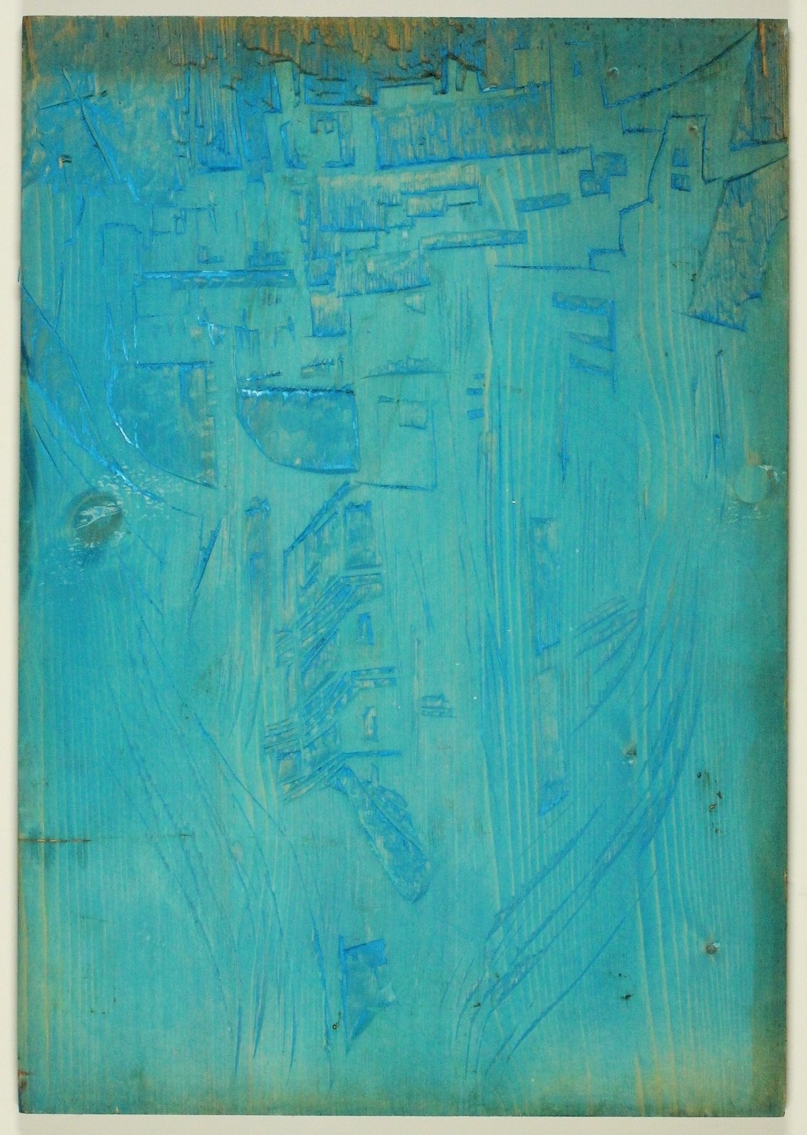 Alle Blätter wurden von der Künstlerin mit der Hand auf Japanpapier abgezogen und sind mit Ausnahme von "Osaka Gaidai" (Auflage 30, Ausstellung Nr. 27) und "Menschen und Kanjis" (Auflage 12, Ausstellung Nr. 26) Unikatdrucke. Die Druckstöcke wurden dazu für jeden Handdruck neu und anders eingefärbt, wobei meistens drei Platten für einen Druck zum Einsatz kamen, jede einzelne Platte aber (wie auf einigen der ausgestellten Stöcken zu sehen) mit mehreren Farben gleichzeitig eingefärbt werden konnte. Das Werkverzeichnis (Wvz) der Druckgraphik von Linde Waber erschien 1985 im Verlag der Galerie Würthle, Wien. All the prints were hand-pulled by the artist herself on Japanese paper and are, with the exception of "Osaka Gaidai" (edition of 30, exh. no. 27) and "Menschen und Kanjis" (“People and Japanese Characters”, edition of 12, exh. no. 26), unique examples, as fresh and different colours were applied to the printing blocks for each new hand-made print. In most cases three blocks were used for each print, with each block (as can be seen on some of the blocks in the exhibition) being able to bear several colours. The catalogue raisonné (Wvz) of Linde Waber's work on paper was published 1985 by Galerie Würthle, Vienna. Bei Erwerb eines Druckstocks gibt die Künstlerin gerne Auskunft über die Motive von Vorder- bzw. Rückseite. Der Käufer verpflichtet sich, keine Abzüge der Druckstöcke mehr herzustellen. When a printing block is purchased, the artist is happy to give information about the motifs on the front and back. The purchaser makes a commitment not to use the printing block to make prints.