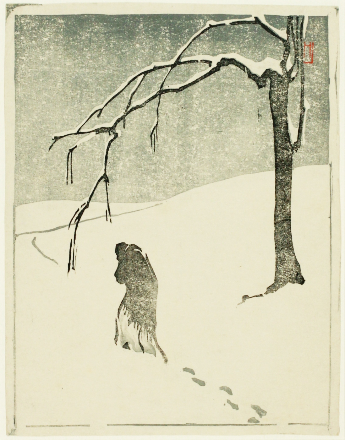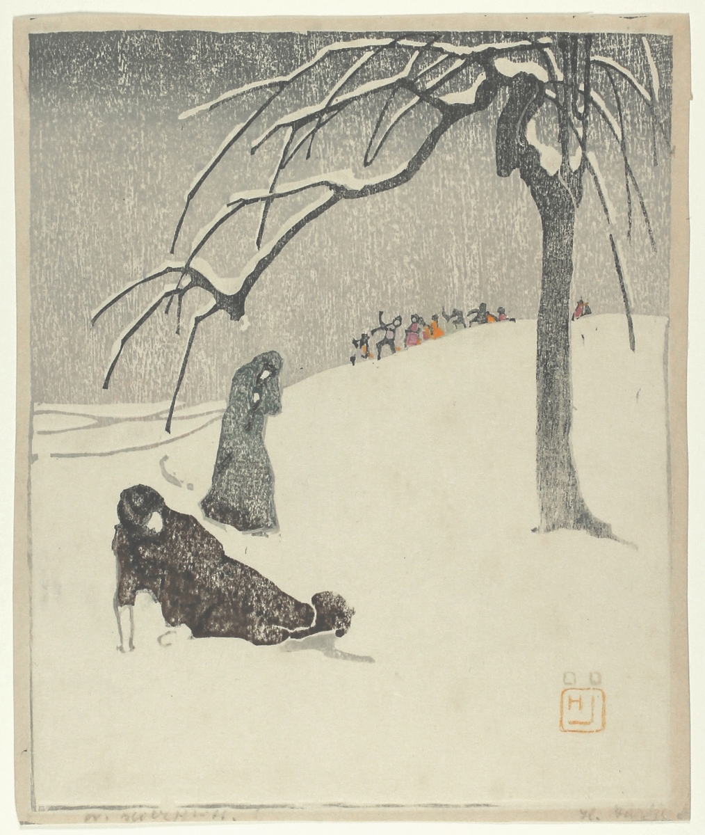 Menschen im Schnee Farbholzschnitt color woodcutsold |